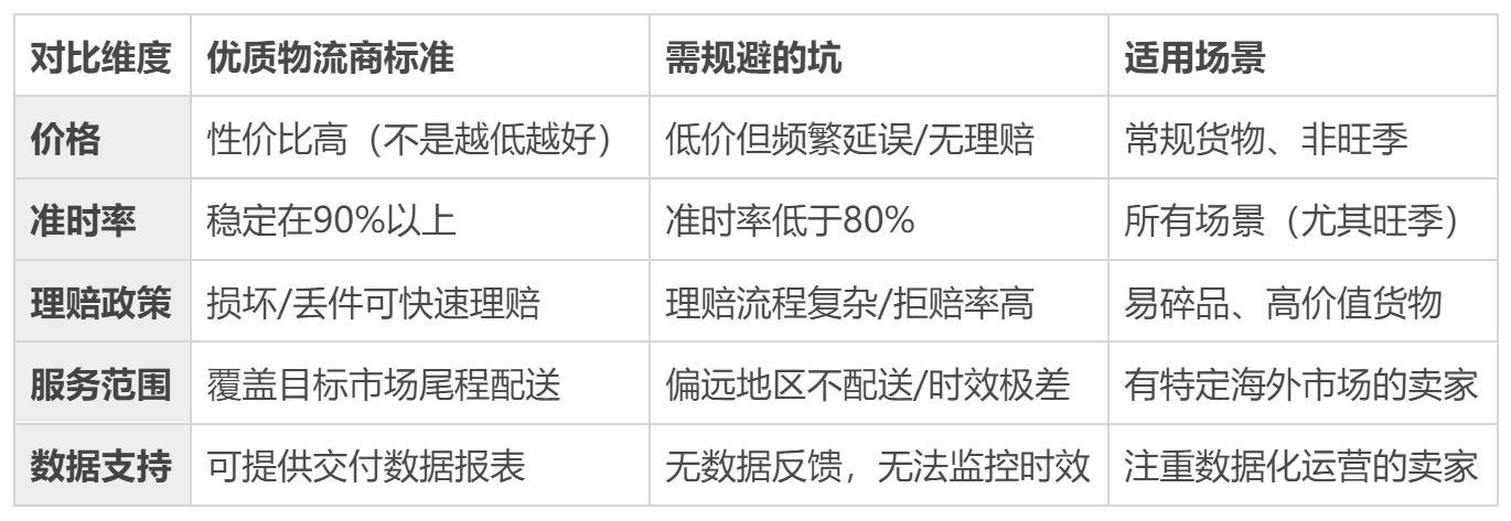 当然要筛选优质物流商,别只看价格,要对比准时率、理赔政策。比如海运选时效稳定的,尾程选本地有实力的配送商;