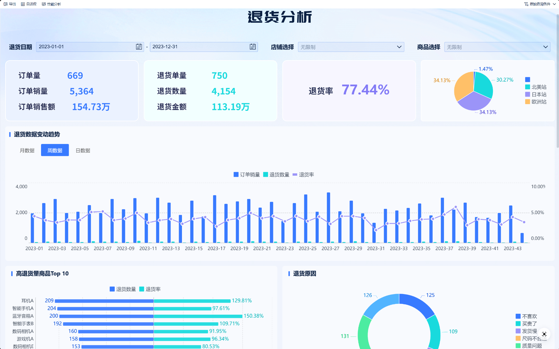 细致分析这种原因的时候,我通常会用FineBI这种分析工具,把退货订单数据和产品信息、物流信息关联起来,做一个归因看板,问题出在哪个环节一目了然,而不是靠猜。