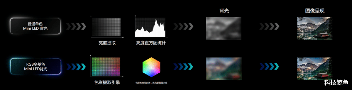 传统Mini LED虽实现了背光分区控制,提升了对比度,但其本质仍依赖单色蓝光激发荧光粉实现色彩转换,属于“二次发光”。观看HDR内容时,红色不够饱和、黑色泛灰、暗场细节丢失。更严重的是,为弥补光效损失,厂商不得不提升背光功率,导致屏幕发热加剧、亮度衰减加快、寿命缩短,高画质与高能耗之间陷入两难。