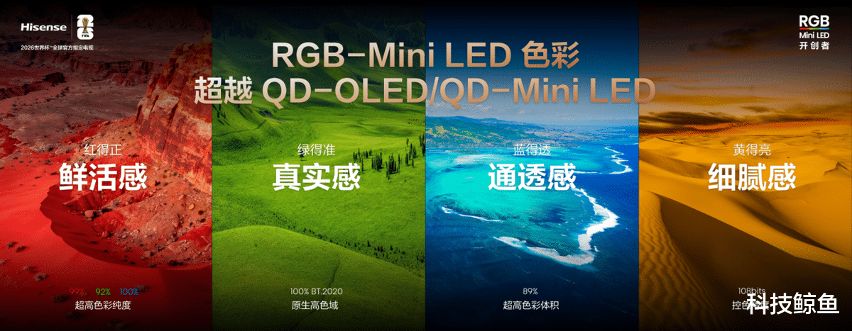 海信RGB-Mini LED技术,正是对这一“妥协逻辑”的彻底颠覆。它直接采用红、绿、蓝三原色Mini LED芯片作为光源,实现真正的原色直出。从光源源头杜绝二次转换,色纯度大幅提升,色彩更纯净、还原更精准。配合海信自研的RGB背光芯片与信芯AI画质芯片H7,系统可实现100% BT.2020色域覆盖——较传统QD-Mini LED提升19%,较QD-OLED提升9%。高达108bits的光色同控精度,让每一帧画面的明暗过渡、色彩渐变都如自然流淌,夕阳的金边、夜景的光晕、暗场中的发丝纹理,皆纤毫毕现。