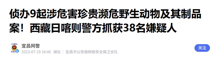 宜昌网警 2023-07-19——侦办9起涉危害珍贵濒危野生动物及其制品案!西藏日喀则警方抓获38名嫌疑人
