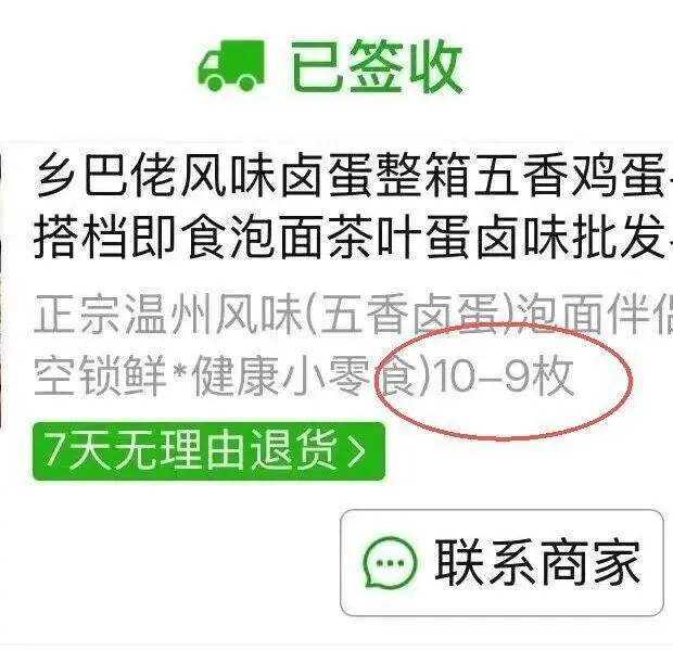 这幸亏是“10-9枚”,顾客至少还能拿到1枚真的。要是标记9-10枚,岂不是顾客还得给商家寄回去一个?