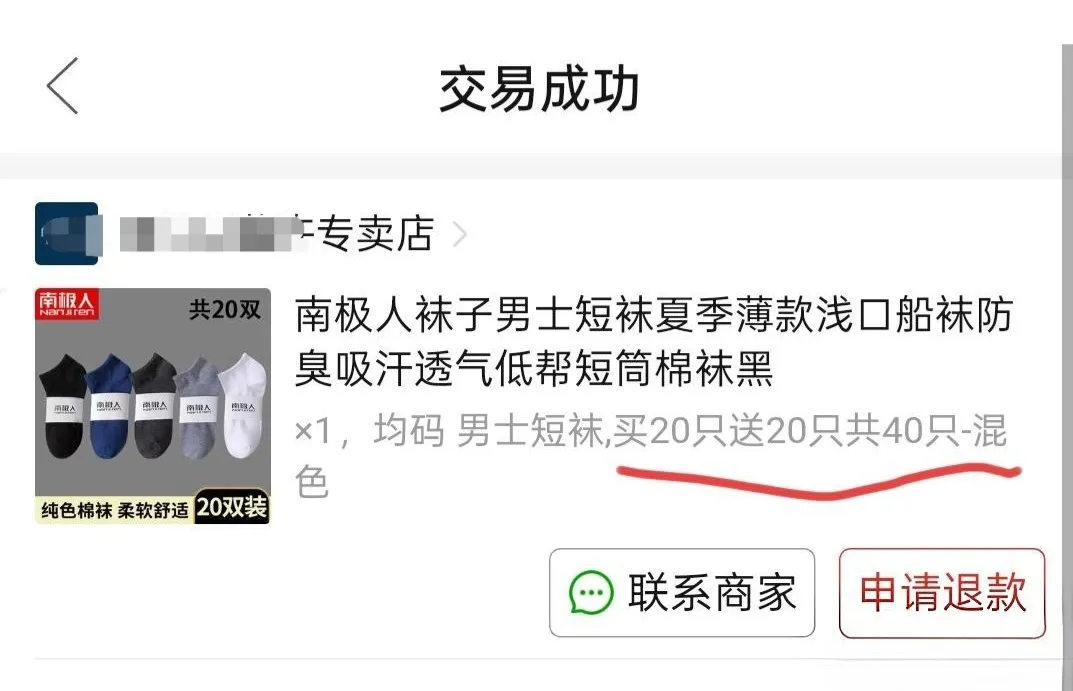 还有绝的呢。某网友看某店铺写着“买20只送20只”,心想这一天穿一双,一个月不用洗袜子。结果到货发现数量只有20双,问客服解释说是买左脚送右脚。商家标注是“只”,不是“双”,无非就是商家玩的文字游戏而已。