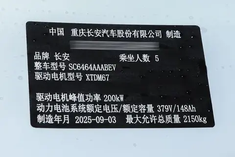 在三电系统方面,深蓝S05全系采用宁德时代电芯。作为全球动力电池领域的头部供应商,宁德时代的电芯经过高低温循环、振动、挤压等多重严苛测试,具备良好的稳定性与耐久性。在此基础上,长安自主研发的“金钟罩”电池系统进一步提升了整车电池安全水平。该电池已通过中汽中心NESTA六维电安全认证,完全符合新国标对动力电池的最新要求。即便在极端情况下发生热失控,也能有效延缓起火或爆炸风险,为乘员争取更多逃生时间。此外,深蓝S05纯电版采用CTC(Cell to Chassis)电池底盘一体化技术,将电池包与车身结构深度融合,不仅优化了车内空间布局,也增强了整车刚性和抗撞性能。配合7700T大压铸一体式铸铝工艺,车身扭转刚度达到35000Nm/deg,优于不少豪华品牌车型。在实际驾驶中,无论是在高速过弯还是通过颠簸路段,车身都表现出良好的整体感和稳定性。