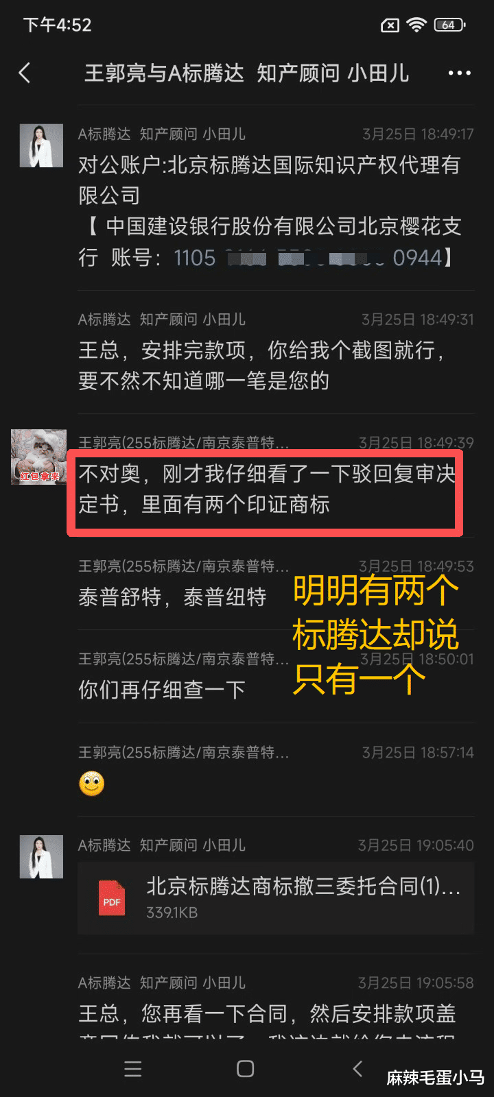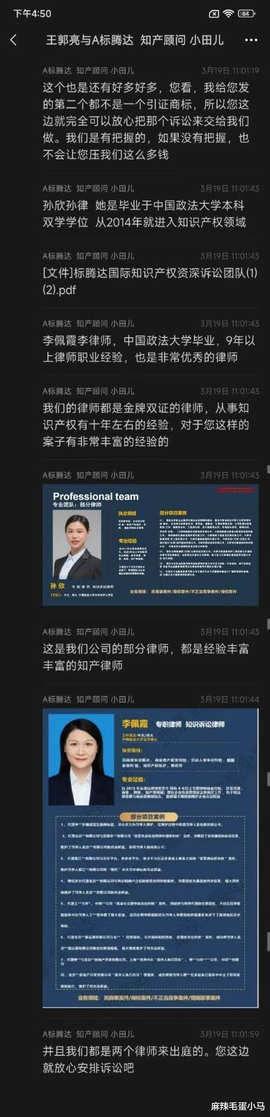 不但如此,他们还一直吹嘘,说会把我的案子交给两位“有十年经验的金牌双证律师”来办。可我钱交了之后,连律师的委托手续影子都没见着。说好的撤三申请有律师写材料,结果也是空头支票。律师行业很规范,没手续就等于没律师。他们这根本就是打着律师的幌子揽活,实际上可能压根没有律师负责!