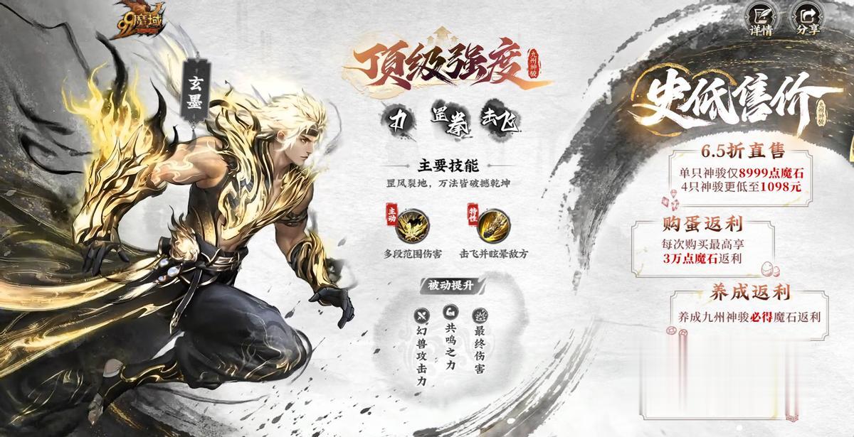 总而言之,这次《魔域》“九州神骏”的获取与养成体系,是一套性价比很高的组合拳:直接的6.5折价格优惠+购买后的魔石返还机会+养成过程中的金符抽奖福利+上线阶段的在线挂机奖励。各个环节都在帮助玩家降低成本、提高效率。