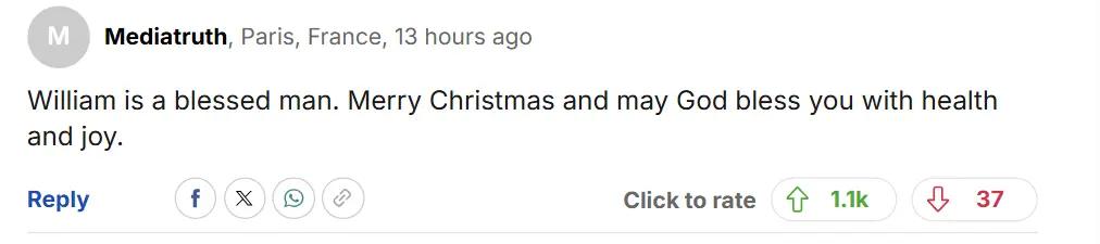 “威廉王子一定为他的两个漂亮女孩感到无比自豪。精彩的圣诞颂歌音乐会!”