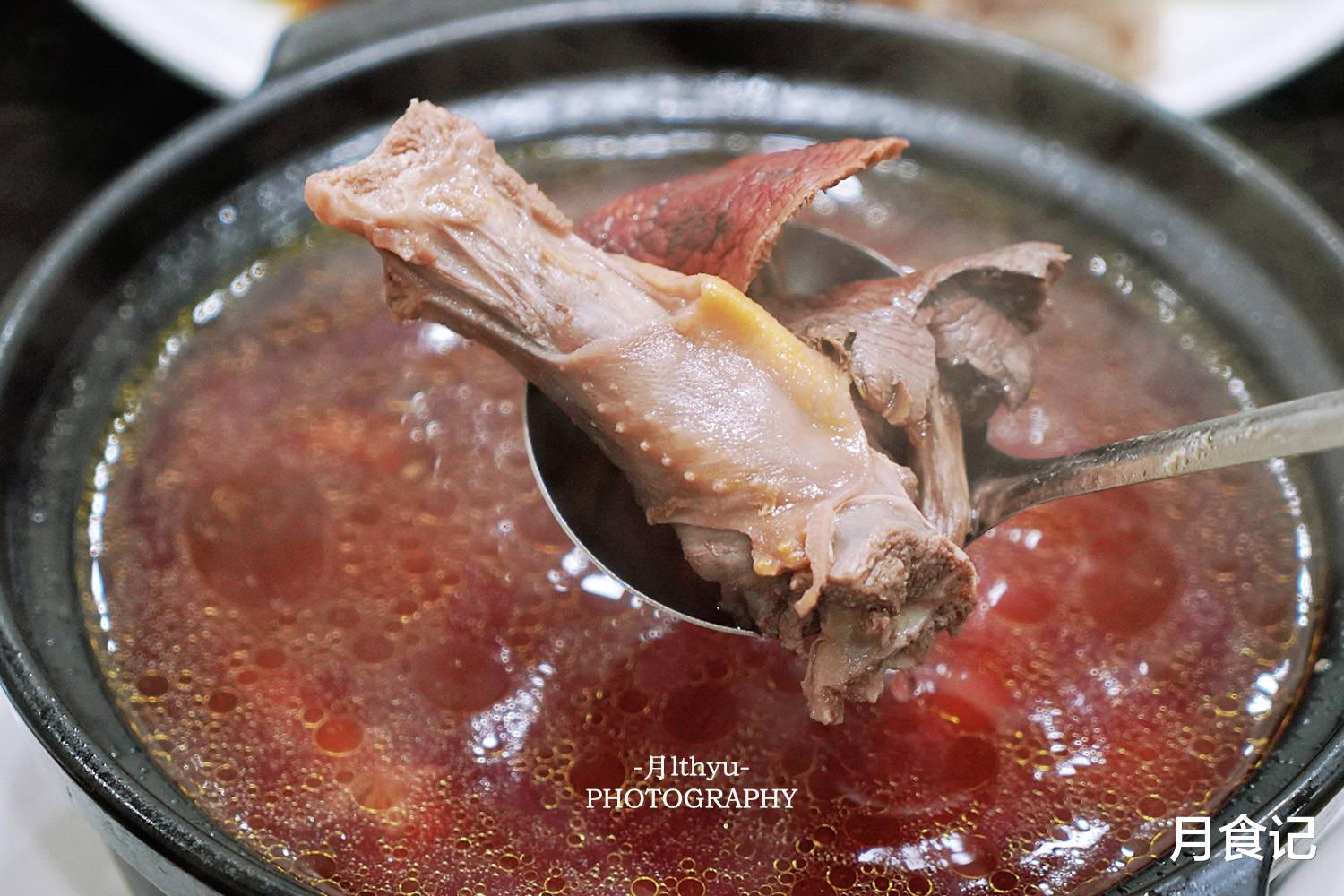 必点的红菇番鸭汤!汤头是淡淡的粉红色,清澈却特别鲜甜,一口下去全身都暖了。番鸭肉也很香,吃得出的土鸭质感。