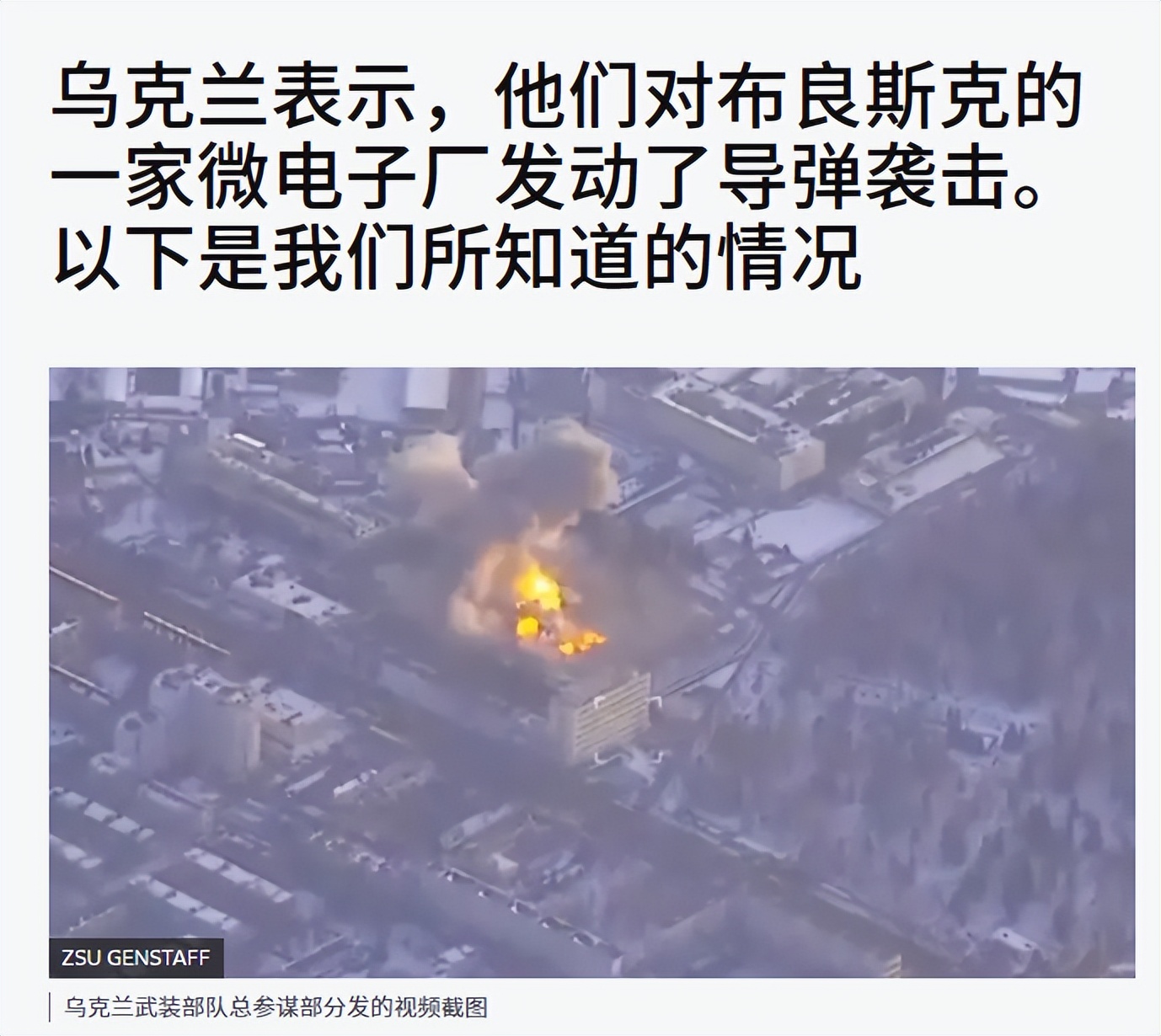 乌方部队很快承认,此次打击由乌军发起,给出的理由是袭击目标为俄方境内的军工相关工厂,称该厂主要生产导弹、军用电子设备等军备物资,属于实打实的军事目标,打击该目标是为了削弱俄方的军事作战能力。