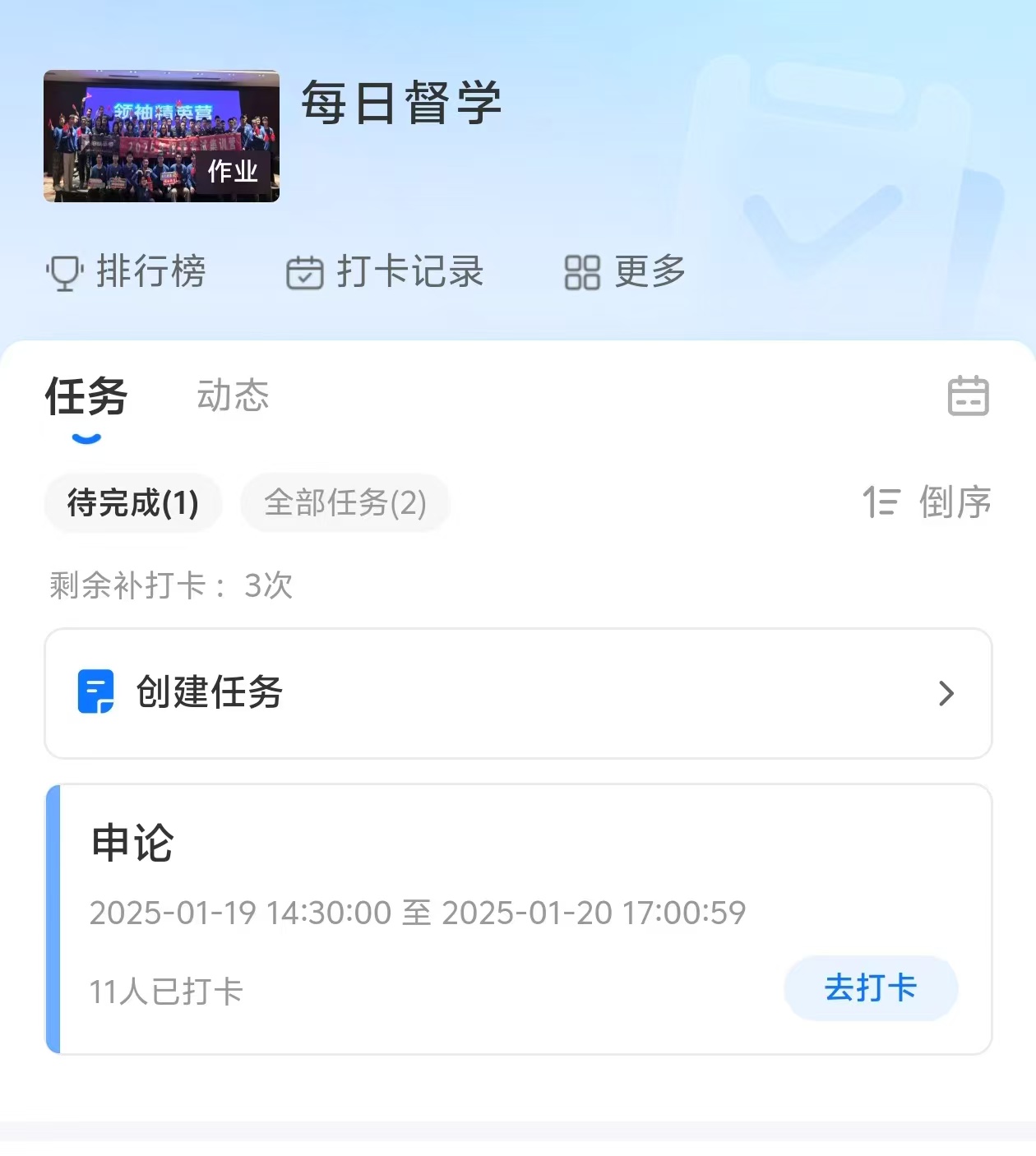 学员们完成精彩的领袖精英营课程后,并非学习的终点,而是新的起点。结营后,督学打卡任务随即开启。精英级督学团队会持续跟进学员的学习情况,为学员制定专属的学习计划,并通过打卡的方式督促学员每日学习。当学员在学习中遇到困难时,督学老师会第一时间给予帮助和指导,解决疑惑。这种持续的陪伴与督促,让学员们始终保持学习的热情和动力,确保知识的巩固与提升,直至成功上岸。