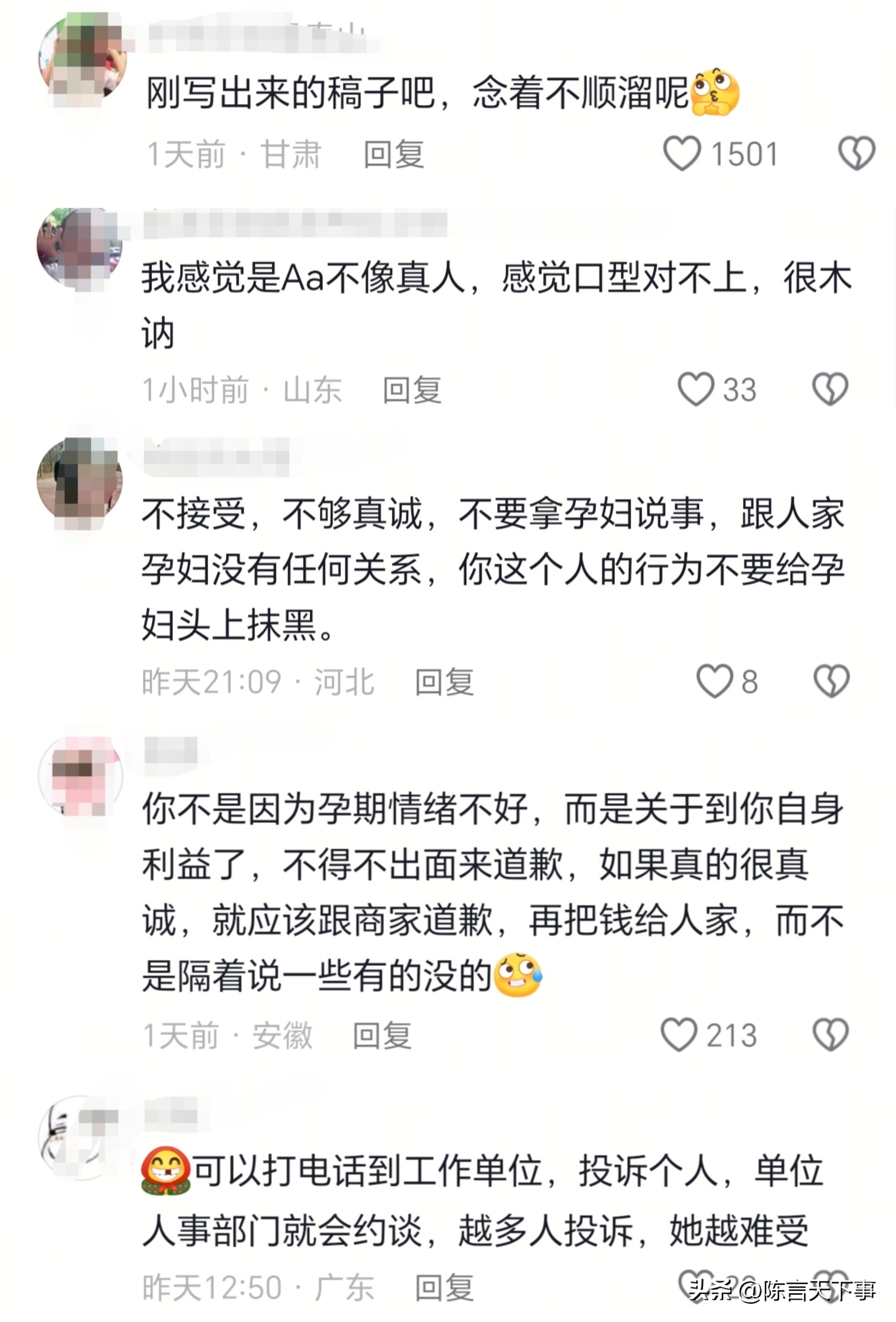 我在王女士道歉视频下的评论,给出的点评几乎都是一个意思,都认为王女士这条评论缺乏真诚,总是拿孕妇来说事,实则是在给自己找借口推脱责任。
