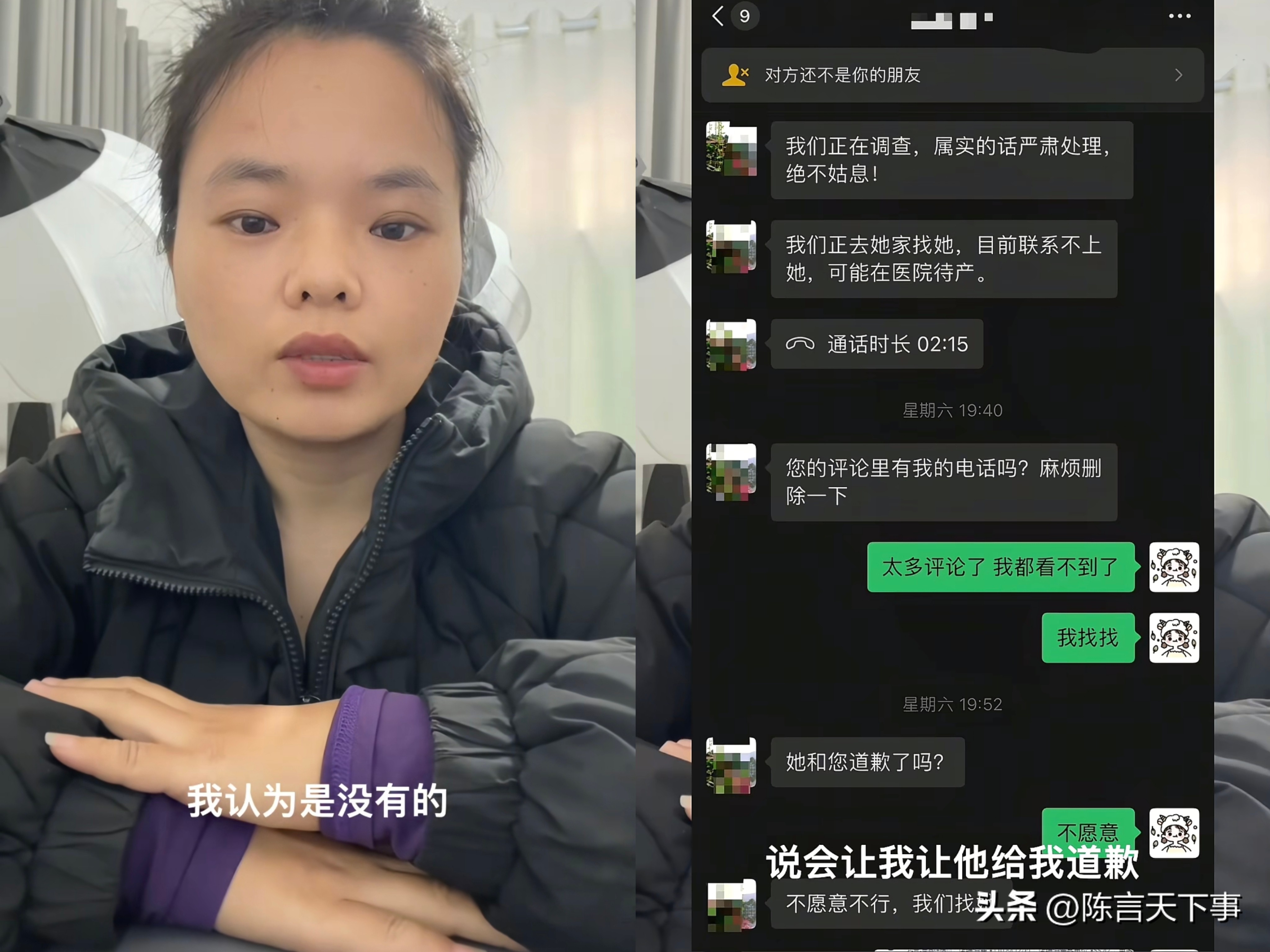 王女士的领导也想尽快平息风波,在了解商家的需求后,再一次找到王女士,才得知她已经因为孕期进产房了。