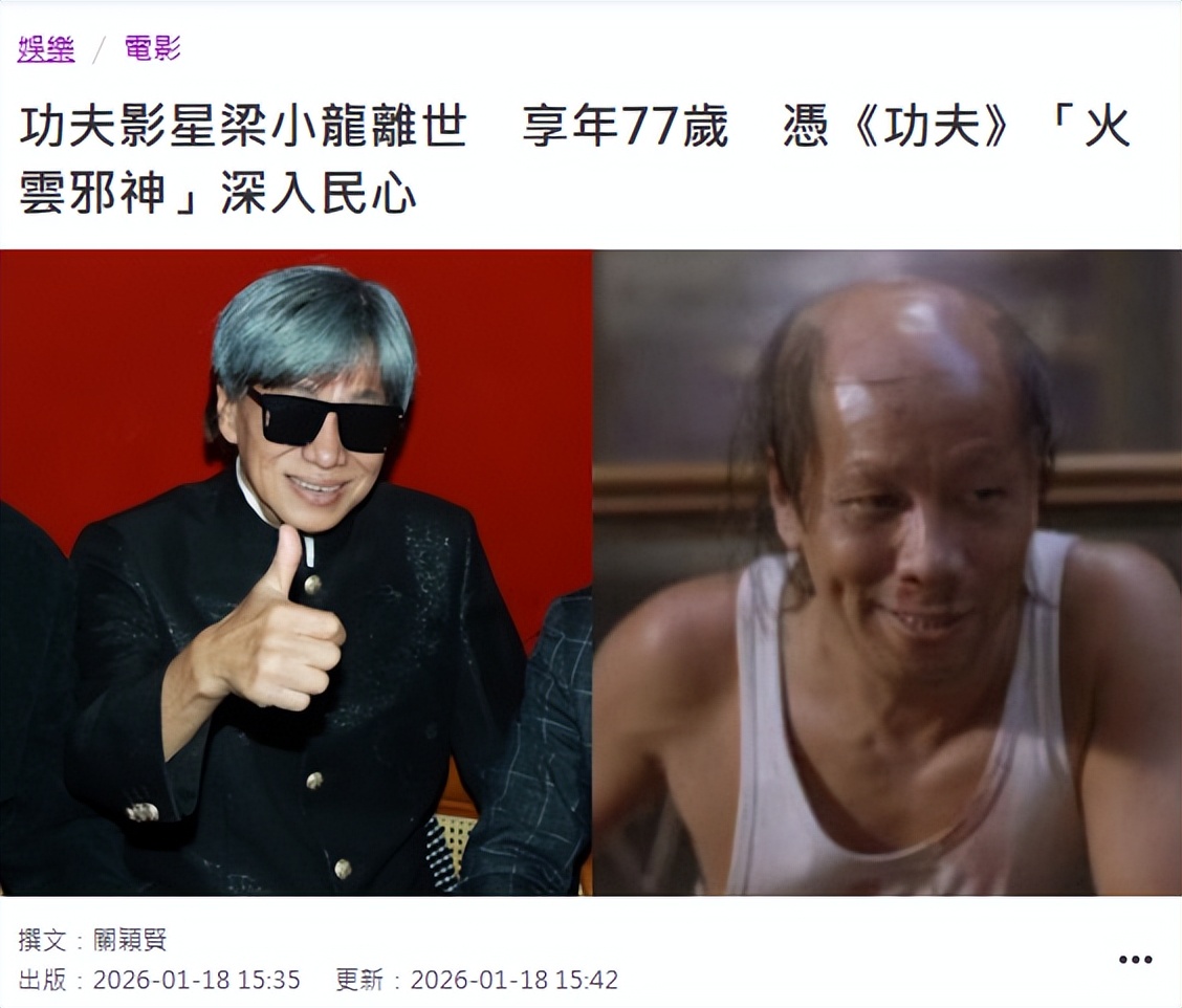 这也太突然了吧?多家港媒在1月18日爆料,著名演员梁小龙去世,享年77岁。