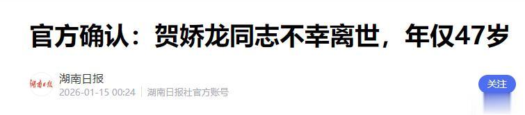 深入民心的基层奉献1月14日,另一个消息让很多人愣住了,贺娇龙走了,才47岁。