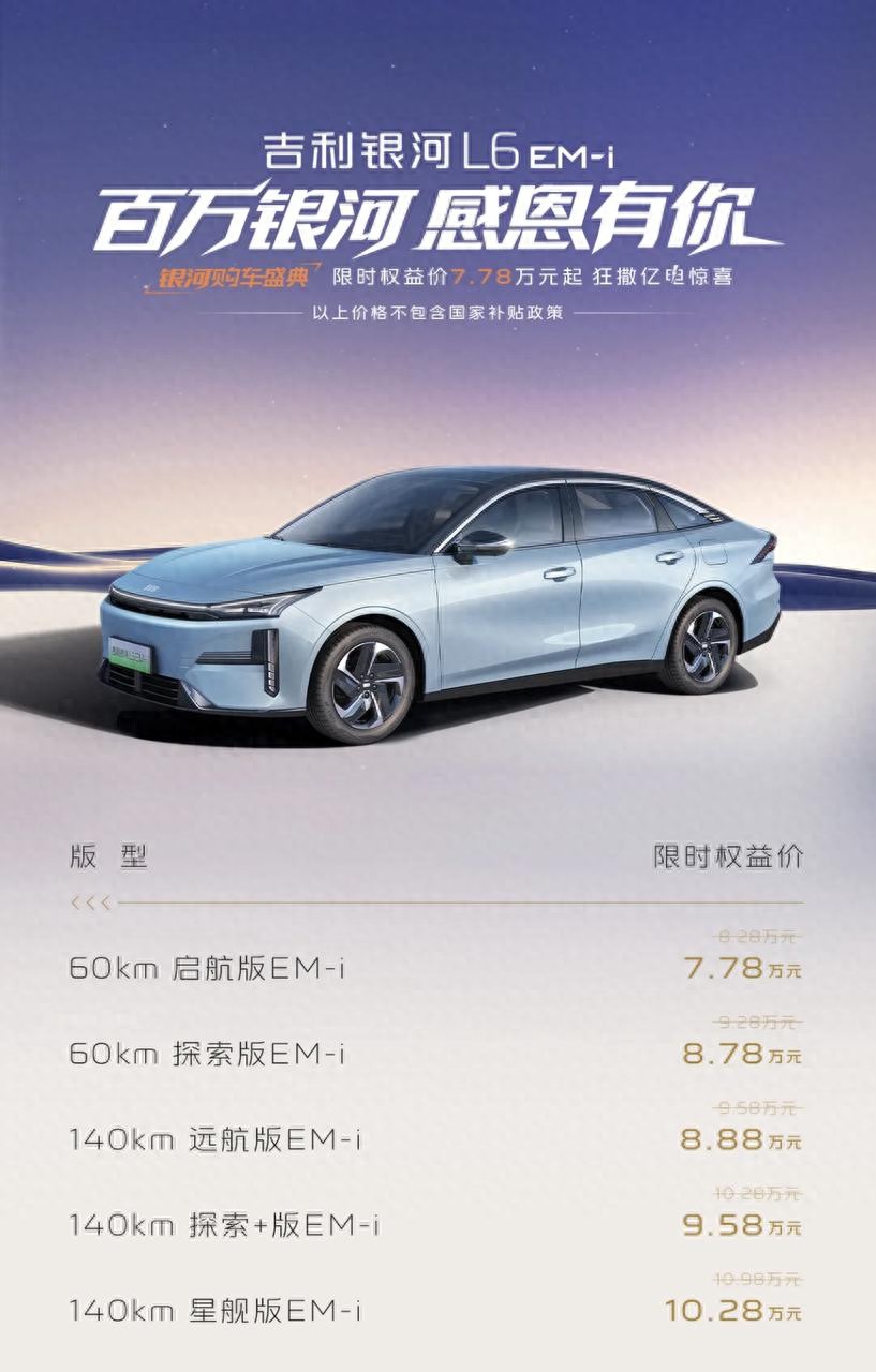 但这一固有印象,如今被银河 L6 EM-i 彻底打破。它以溜背轿跑造型兼顾 2752mm 超长轴距,用设计美学平衡实用需求,配合 11 月 7.78 万元起的限时权益,成为既懂年轻人审美又满足家庭需求的优选。