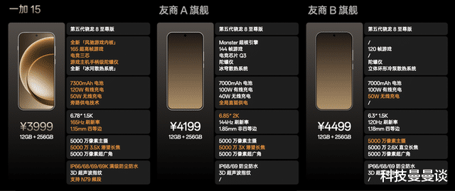 作为一加数字系列全新成员,一加 15 在性能、散热、触控、网络等方面带来无短板的出色表现,是行业首部真正意义上的「性能 Ultra」旗舰,引领行业进入 165 超高帧游戏时代。一加 15 搭载第五代骁龙 8 至尊版以及全新一代「风驰游戏内核」,配合全新「冰河散热系统」,实现满血性能释放,配合「电竞网络芯片 G2」与「灵犀触控芯」,为用户带来极致流畅的 Ultra 级游戏体验。一加 15 首发全球首块 165Hz 超高刷高分辨率第三代东方屏,在流畅度、屏幕素质、暗夜显示、护眼能力四大维度带来引领行业的表现。一加 15 还搭载 OPPO 自研 LUMO 凝光影像,拥有同档唯一的 7300mAh 超大电池+120W 闪充续航组合以及全面焕新的 ColorOS 16 系统。