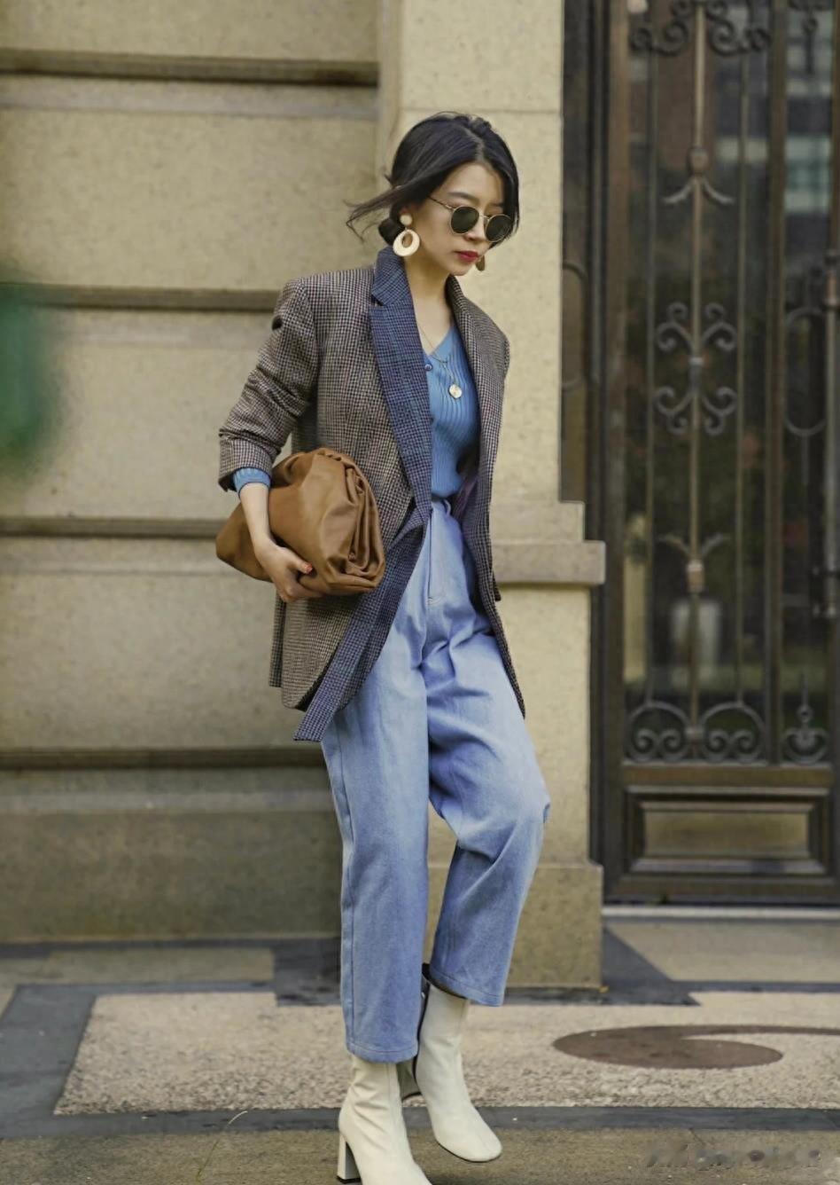 三、拒绝花哨艳俗,简约才是高级感王道很多女性误以为"年轻感"需要靠繁复的花纹和鲜艳的色彩堆砌,却不知这正是显老的关键。真正显年轻的穿搭往往遵循"少即是多"的原则。比如法国女性常穿的"三件套":白衬衫、牛仔裤、风衣,通过面料质感和剪裁细节展现高级感,这种简约美反而比花哨打扮更显年轻。