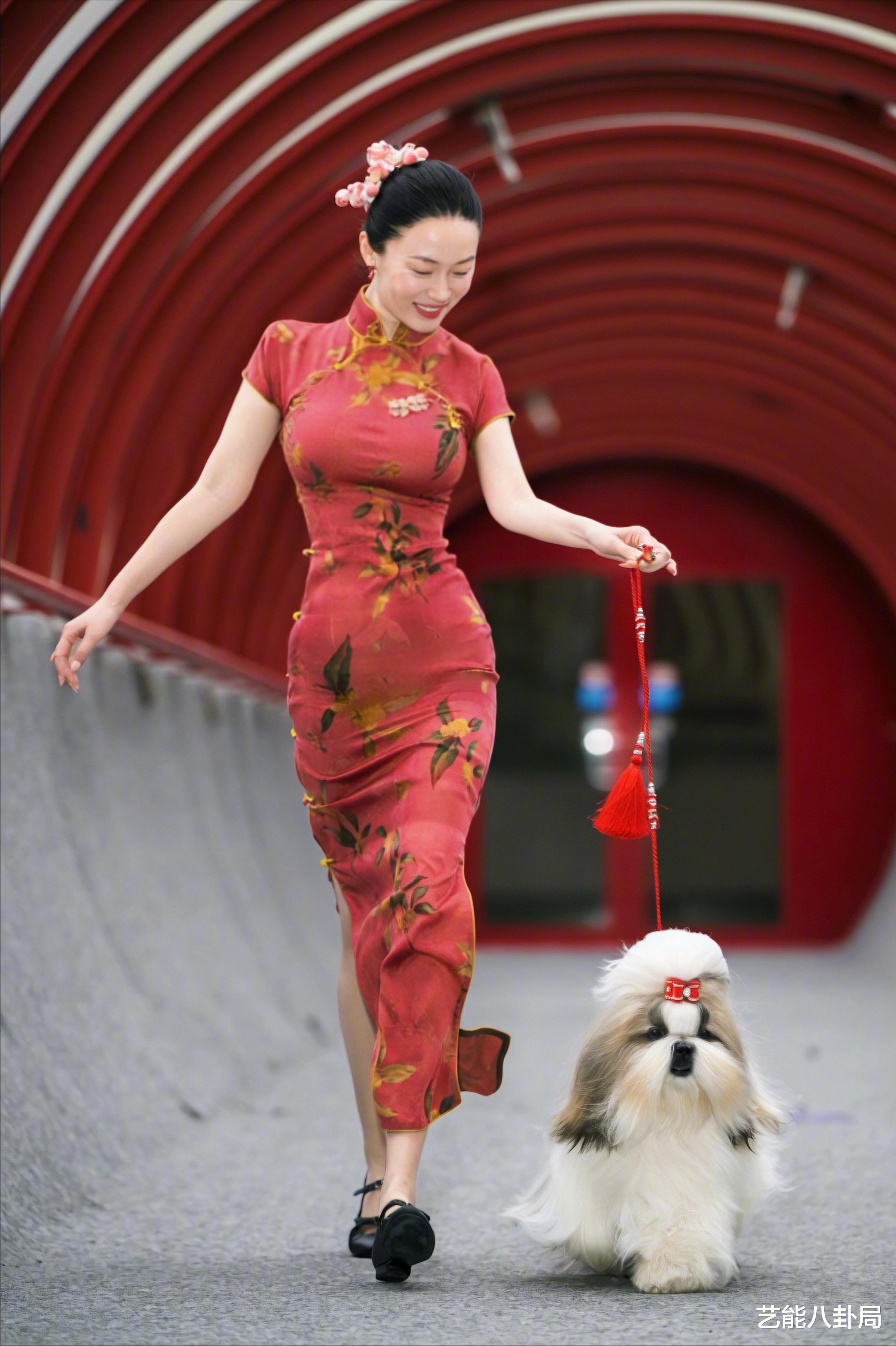 为了展示出西施犬的优雅,霍思燕还特地穿着旗袍上阵。