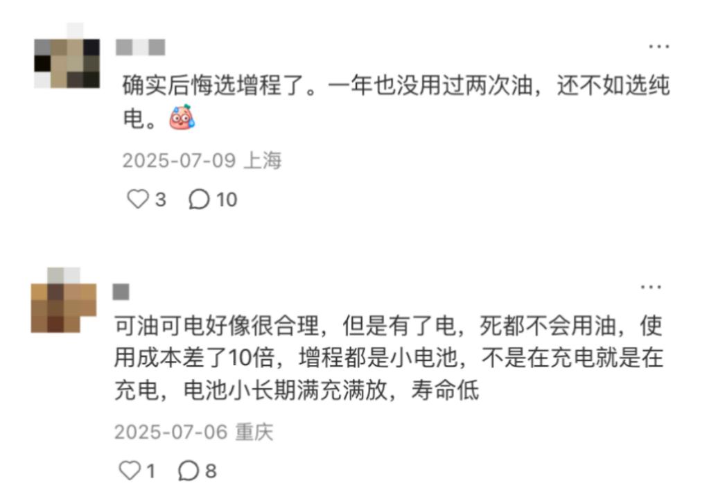 一位网友的质疑很有代表性:我花了接近纯电车的钱,却还要背着几乎用不到的发动机和油箱,这笔账是否划算?