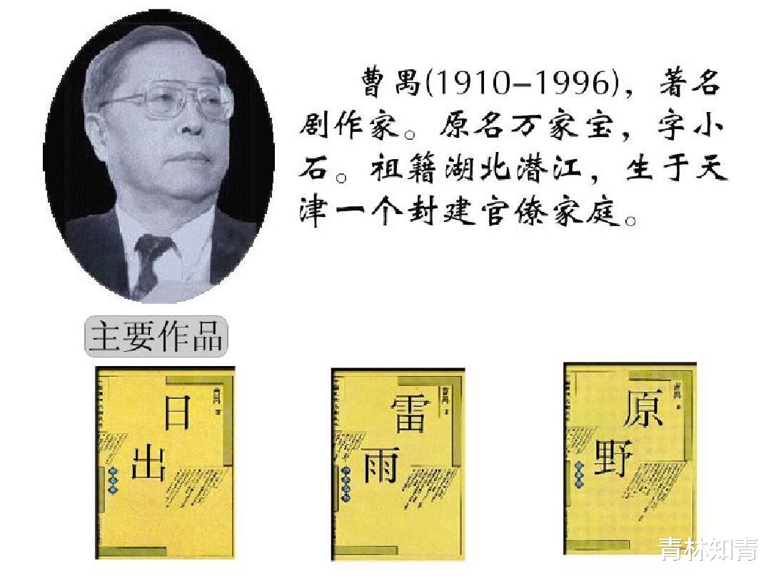 1910年,曹禺出生在天津的一个没落官僚的家庭,他原名万家宝,不幸的是,母亲生下他后便去世了,随后,姨妈成为他的继母,这位女士是个戏迷,经常带他去看各种戏剧,这也对曹禺后来的话剧创作,产生很大的影响。