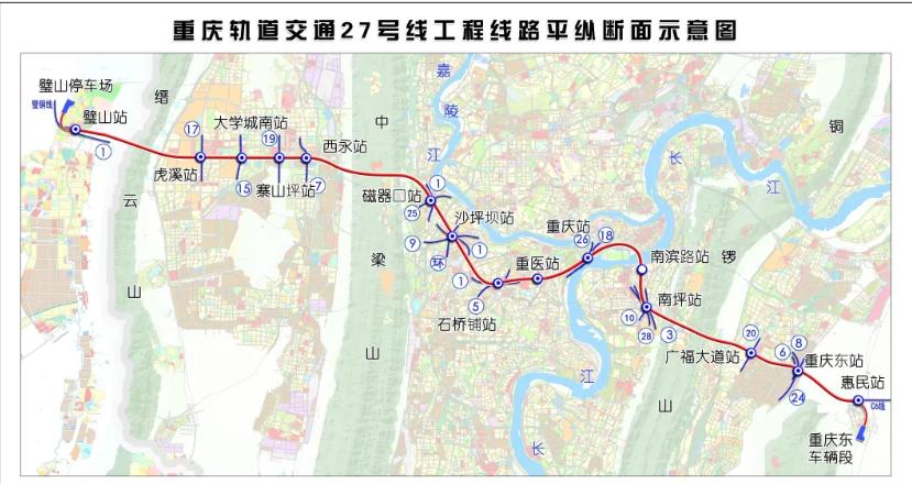 而27号线,也是一条市域快线,它承接的是重庆核心高铁枢纽的重任。