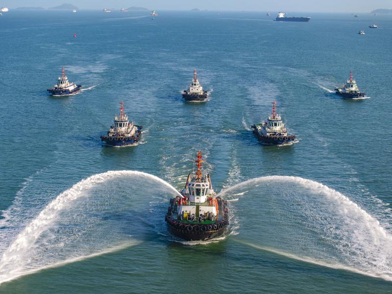 昨天下午,由厦门港务船务有限公司投资建造的四艘崭新的纯电拖轮在厦门港嵩屿码头正式交付,标志着国内规模最大的新能源拖轮船队建成投用,为我国港口绿色转型注入新动能。