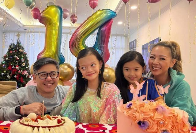 在每年为伊莎贝拉庆生的时候,都是钟丽淇最用心的时刻。今年的生日派对虽不奢华,却处处藏着爱意:现场以伊莎贝拉喜欢的绿色为主色调,挂满可爱的小熊气球和数字“15”装饰,巨型蛋糕上还特意做了她最爱的卡通造型。钟丽淇在社交平台发文感慨:“看着你绽放成如此美丽、优雅且鼓舞人心的小女孩,对妈妈来说是莫大的幸福。再有一年就是你甜蜜的16岁了,伊莎贝拉,爱你到永远,比从地球到月球还要远”,言语间满是老母亲的欣慰与深情。照片中,伊莎贝拉依偎在父母中间,与妹妹亲密贴脸,全家笑容洋溢,满是岁月静好的温馨。