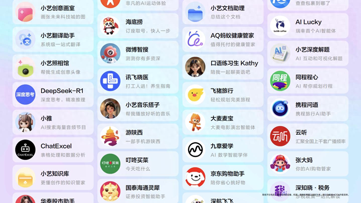 在鸿蒙6中,小艺已接入叮咚买菜、京东购物助手、海底捞、大麦-大麦麦宝、张大妈、支付宝-AQ蚂蚁健康管家、讯飞晓医等生活类智能体,生活中,对于“吃什么””怎么买划算““健康吗”的终极难题,如今通过小艺一句话就能解决。