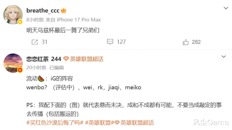这次转会期,呼吸是真被拉扯麻了,IG管理层许诺他,给他工资帽顶薪,但后续就没再联系了,据红茶爆料,IG新上单大概率是文波,不过呼吸好像也已经找到工作了,他凌晨一点多发文:明天乌兹杯最后一舞了兄弟们,这话的意思很明显了,就是找到工作,准备退赛备战第二赛段了。