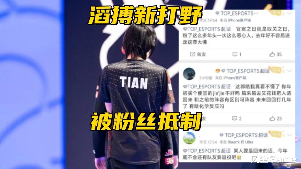 小天和北川之间二选一,肯定是选小天,但滔搏的粉丝们,现在都在抵制新打野,很多粉丝在超话发文喊话:官宣之日就是取关之时,粉丝吐槽郭皓的操作是恶心人,好不容易送走小天,现在又把他请回来了,说实话不签小天的话,市面上真找不到,能契合滔搏这支队伍的自由人打野。