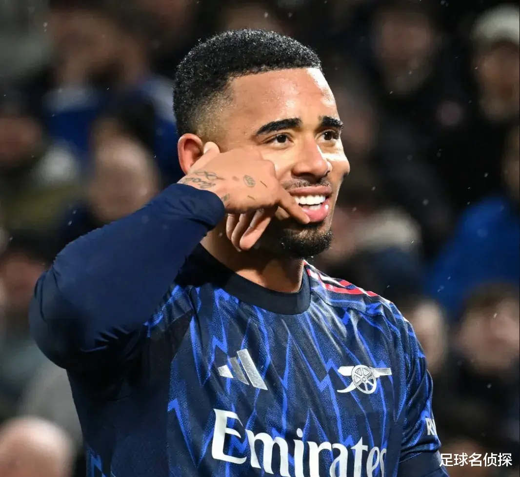 热苏斯至今进球的英超比赛,从来没有输过:64场联赛,59胜5平。
