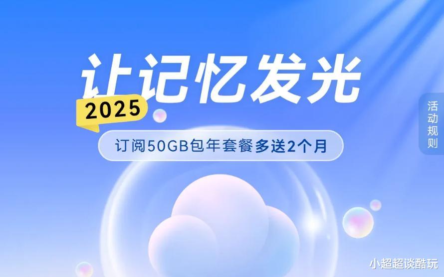 “华为云空间2025让记忆发光”活动已经开始了:从现在到12月31日,订阅50GB连续包年套餐,只要58元/年,还额外多送2个月时长!不到一顿饭钱,就能给你的2025年回忆买个“保险箱”,还能解决手机存储不足的烦恼,现在冲真不亏!别让“存储空间不足”扫了年底庆祝的兴,快去给自己也颁个奖吧!
