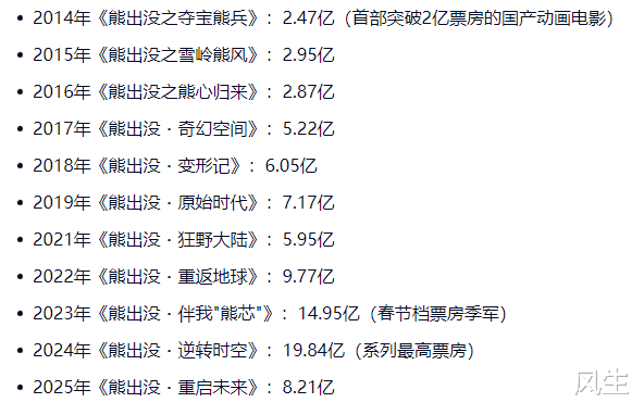 但虚拟明星也是明星,假设那几年不是遇上几个“神级对手”,熊出没系列可能就成一次票房冠军,就像句老话:熊出没就是春节档票房的质检员。