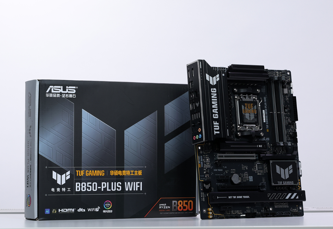 按朋友的说法,主板选新出的,但不用太豪华,而且首选御三家。最终敲定的是这款华硕TUF GAMING B850-PLUS WIFI主板。配置方面,主板采用8层服务器级别PCB,14+2+1相供电设计,搭配双8pin外接CPU供电,可以轻松拉满98X3D性能。
