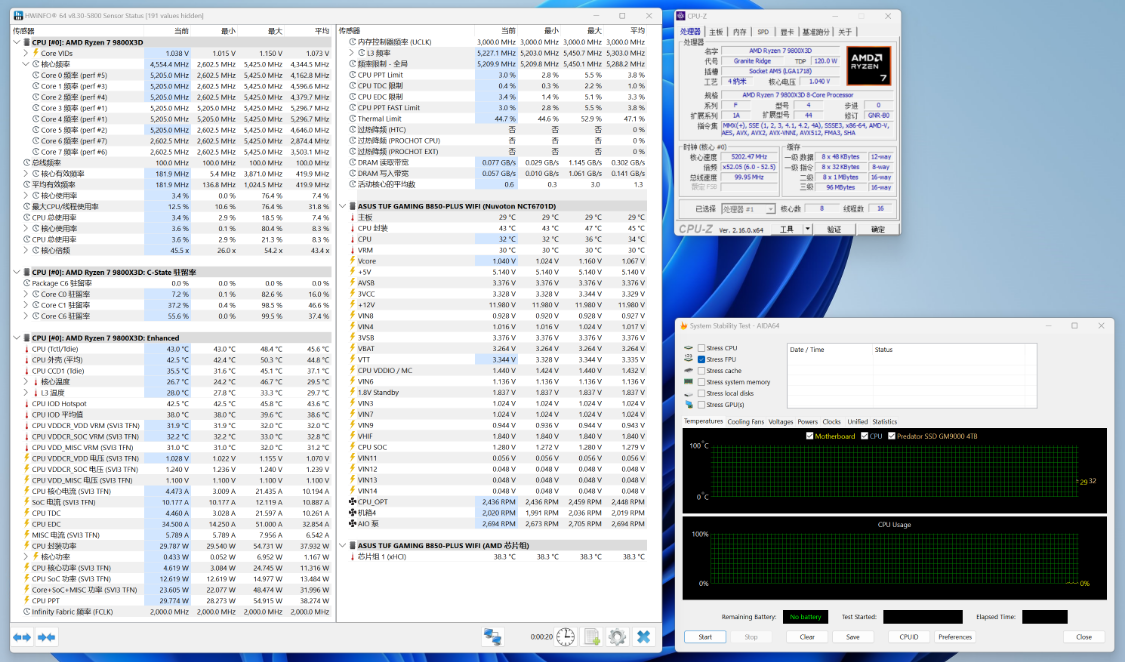着急用,当然就不用盯着那颗还没上市的9850X3D了,直接9800X3D安排。8核16线程设计,基础频率4.7GHz,加速频率5.2GHz,二级缓存为8MB,三级缓存为96MB,TDP功耗120W。说吊打7年前白嫖的那颗U,应该一点毛病没有。