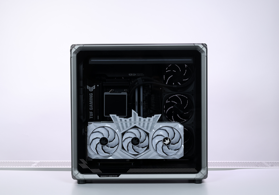 还好朋友够果断,在这一波显卡大涨之前就已经入手了影驰RTX 5080 HOF OC LAB Deluxe-X显卡。显卡是全套配置中最先下手的,后面配件选择了全黑,确实有些意外,但好在,最终成品效果还不错。
