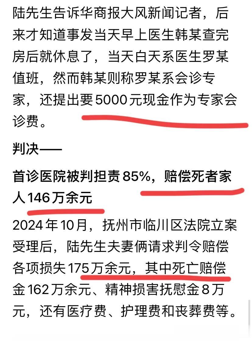 大家注意到一个细节没?夜班医生韩某把白天值班医生罗某称为会诊专家,向患者家属提出5000元专家会诊费,虽然最后没有得逞。