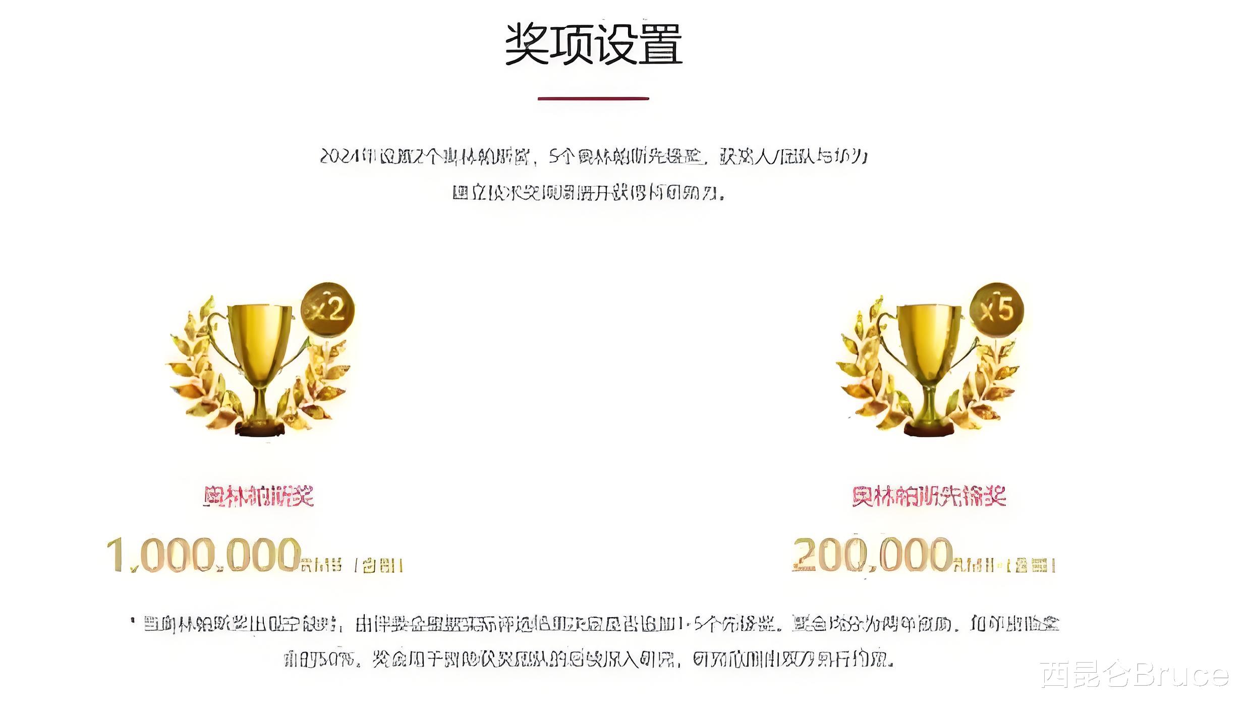 今年,华为设立了总额为300万元人民币的奖金池,继续向全球科研工作者悬赏解题方案。其中,将设立2个奥林帕斯奖,每个奖金100万元,以及5个奥林帕斯先锋奖,每个奖金20万元。