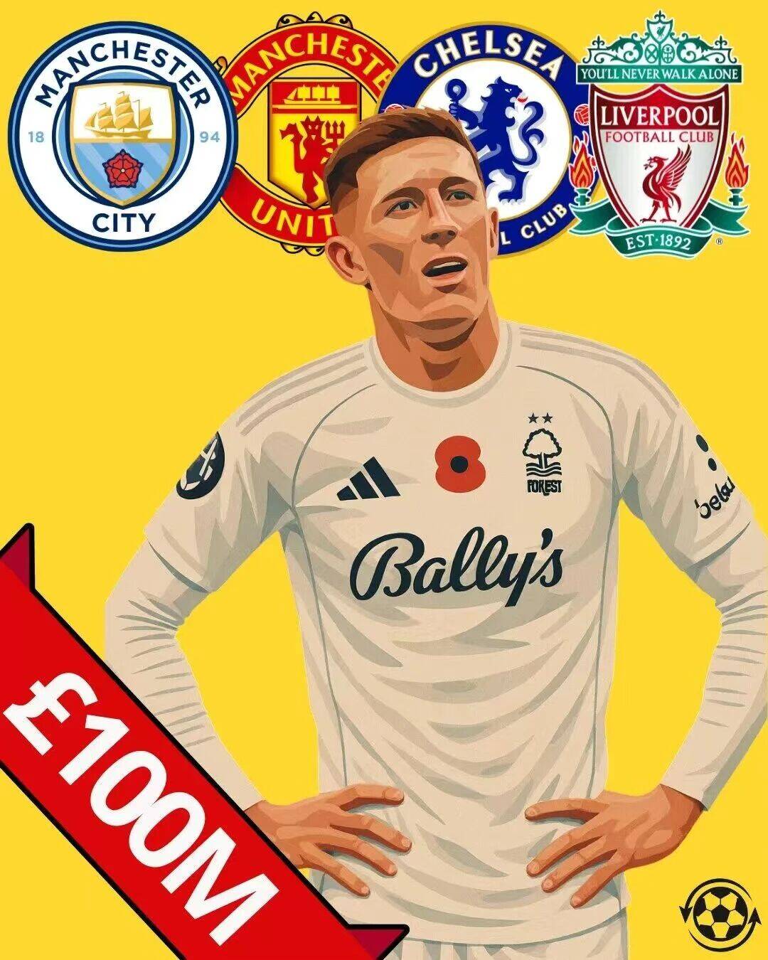 诺丁汉森林已经为他的离开做好准备——标价1.2亿欧元。这个数字让许多人想起去年赖斯转会阿森纳的情景:当时曼联因1亿英镑要价却步,最终错失良机。