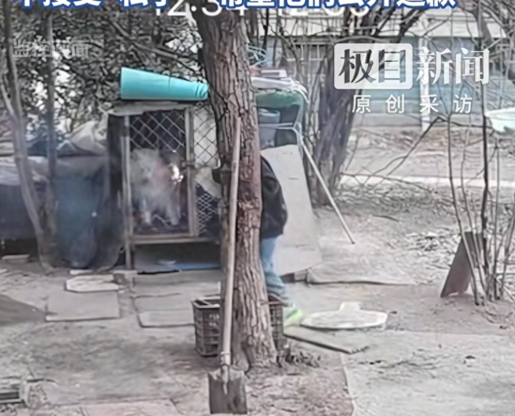 狗笼里面的狗狗发出痛苦的呻吟,这可吓坏了那两位小孩子,那位穿着白色衣服的小孩,赶紧跑到外面找水,然后往狗笼子里倒去。