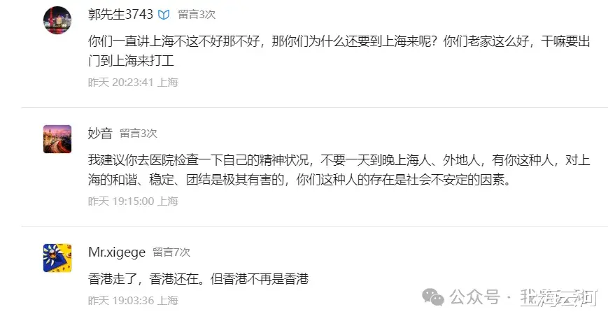 这是一个手机IP显示上海的老乡的跟帖,又是一个在上海的外地人吗?在我的一篇文章下面的跟帖,我的这篇文章的标题是:《你们上海人还希望上海能安静下来,这是你们在做白日梦》