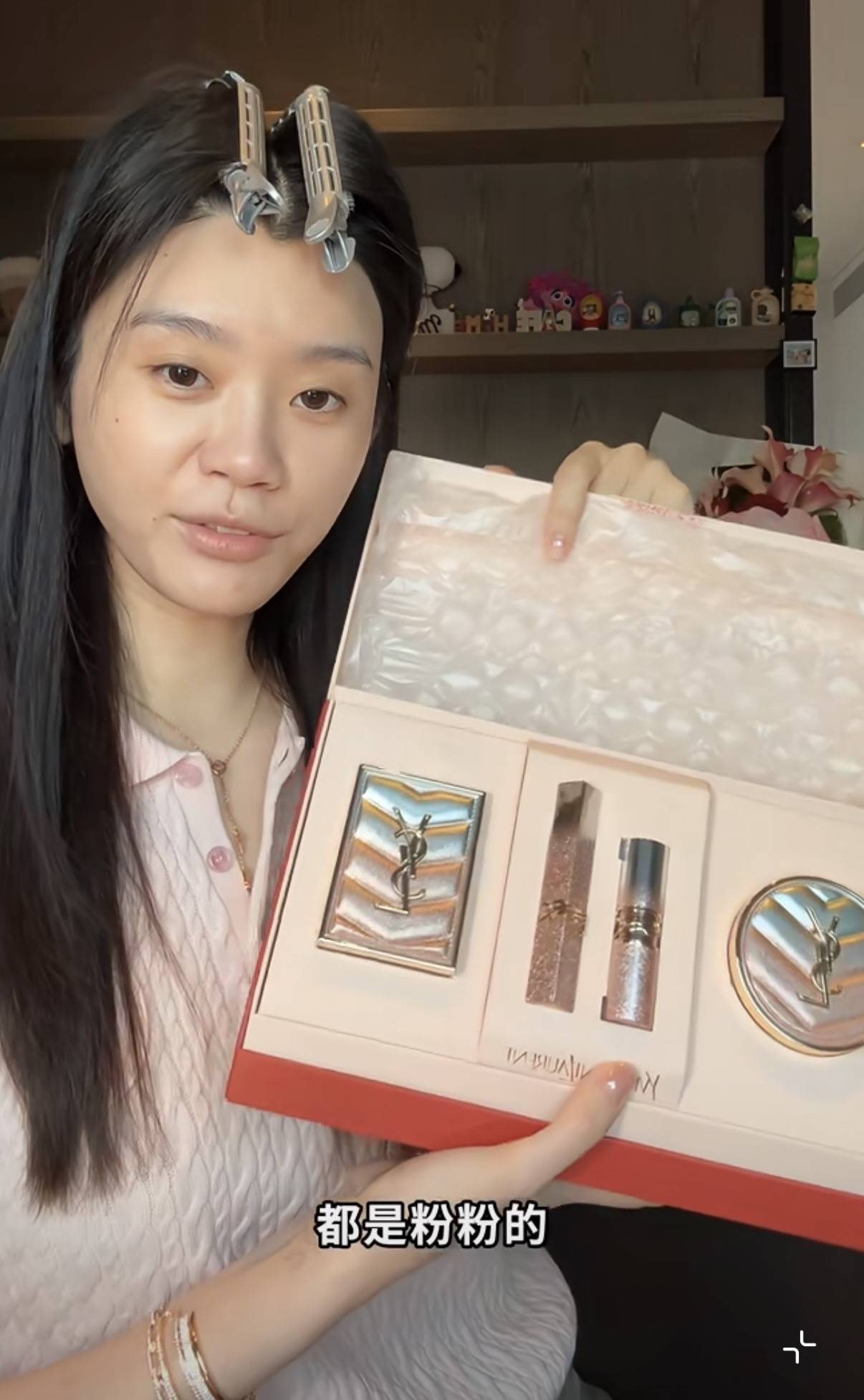 稍微上过一层粉底后,奚梦瑶又拿出了自己的YSL礼盒,只能说豪门太太的化妆品太多了,旧的还没用完、就会直接买新的套盒,而且奚梦瑶嫌麻烦直接没拆新的,就是展示了一下。