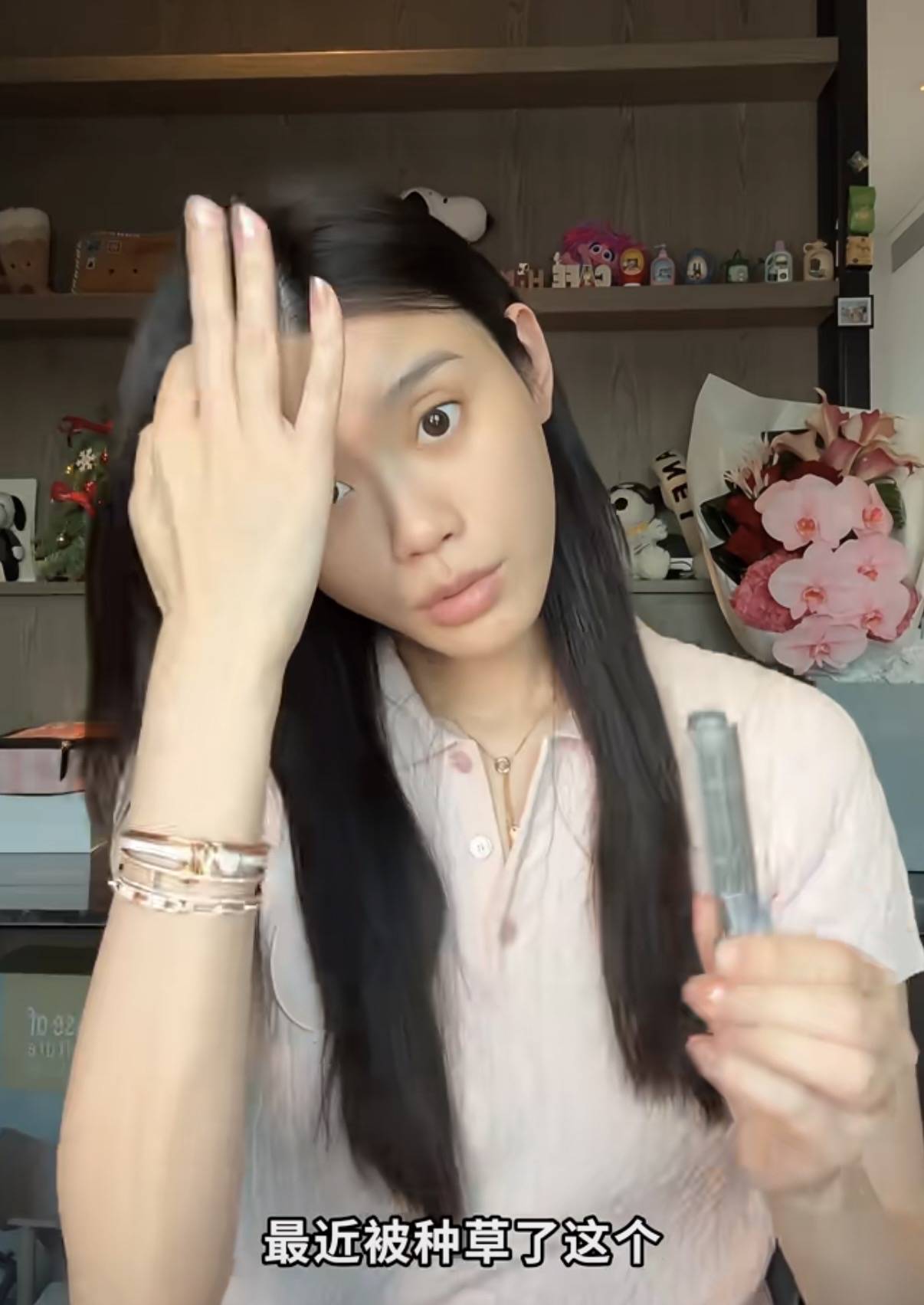 化完妆之后,奚梦瑶还展示了老公何猷君送给她的情人节鲜花。别看这束情人节鲜花很土气,她还是在阿玛尼鲜花店买的呢。