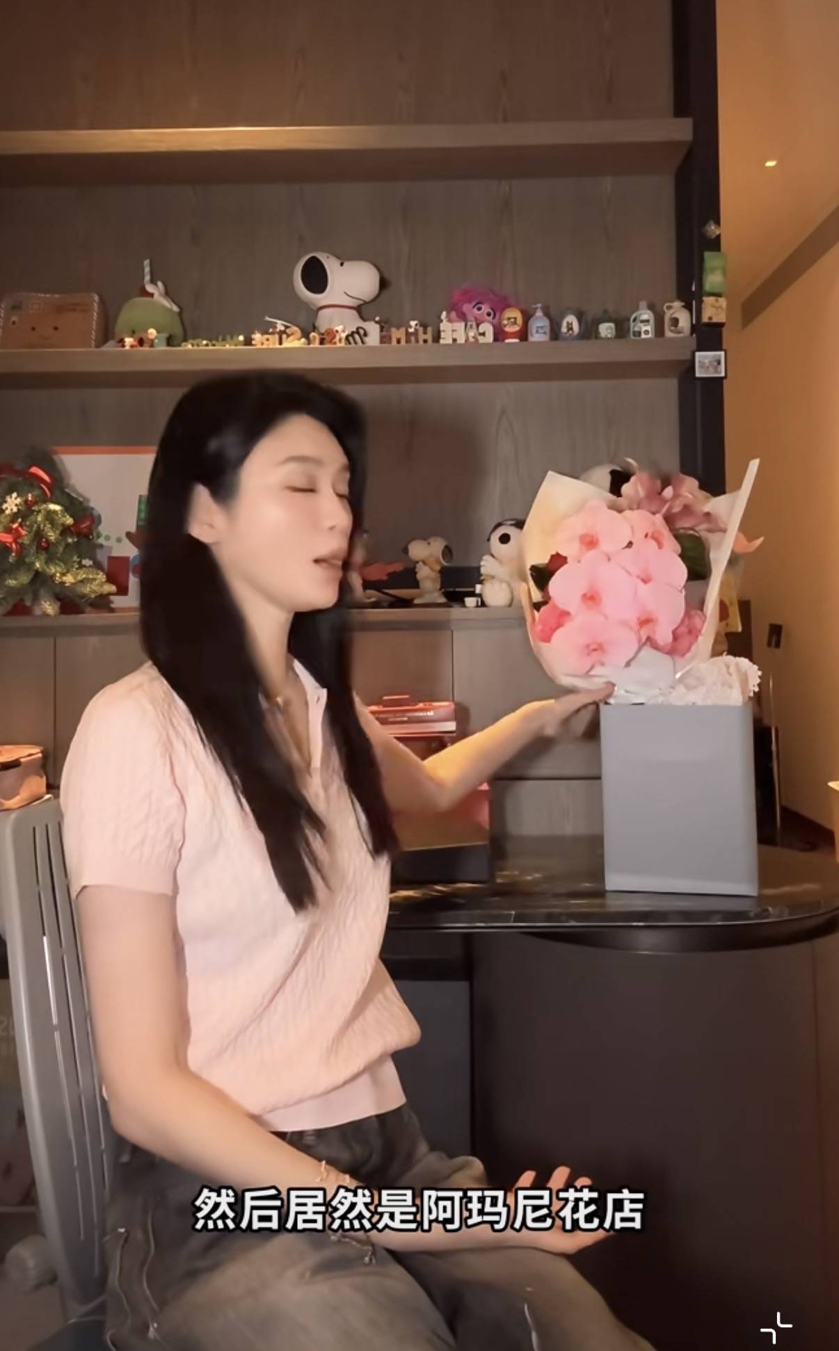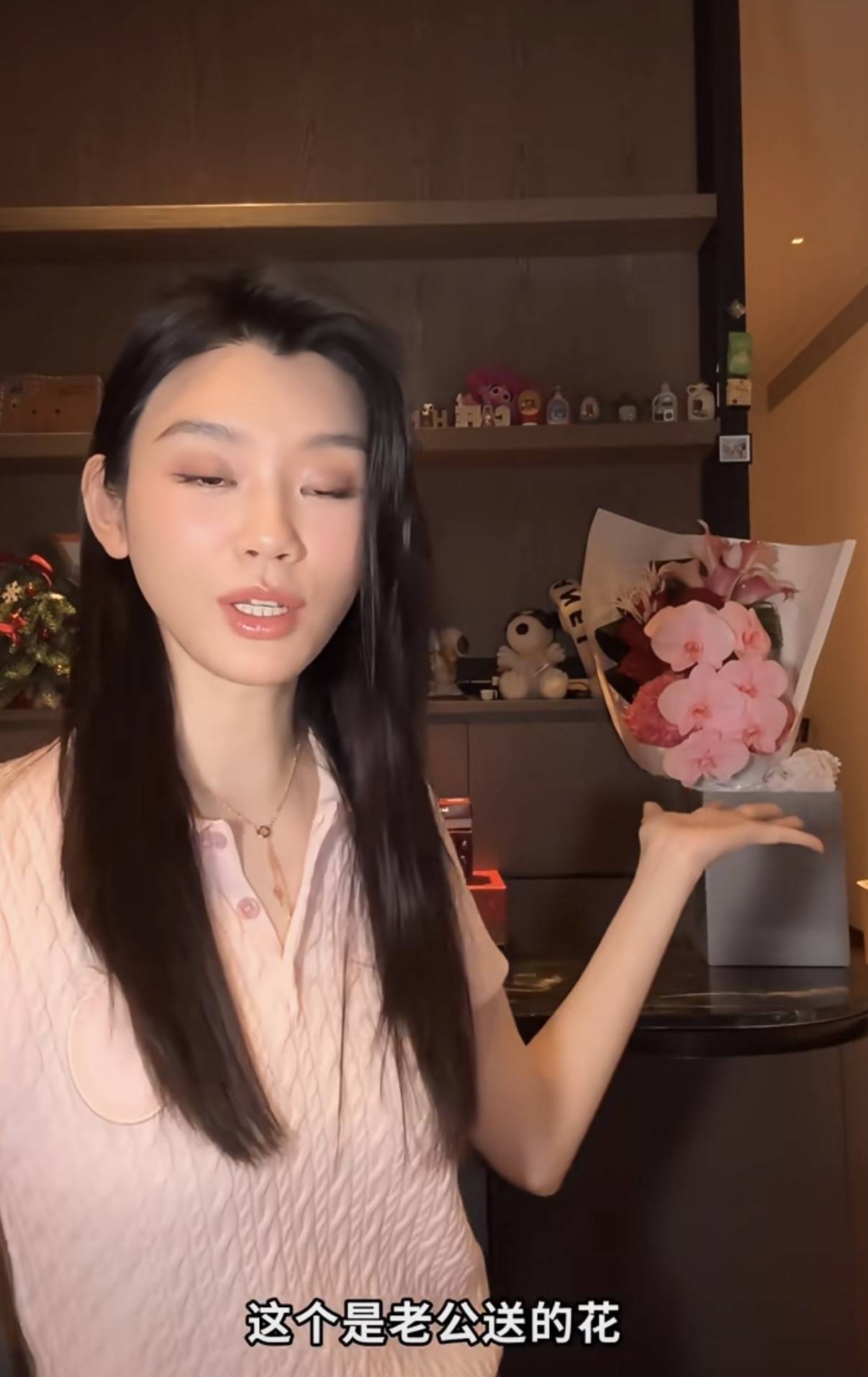 何猷君特别喜欢粉色系,简直就是直男审美。情人节这天,奚梦瑶为了迎合老公的喜好,还特意穿了一件粉粉嫩嫩的衣服,并且夸老公送的花很可爱。
