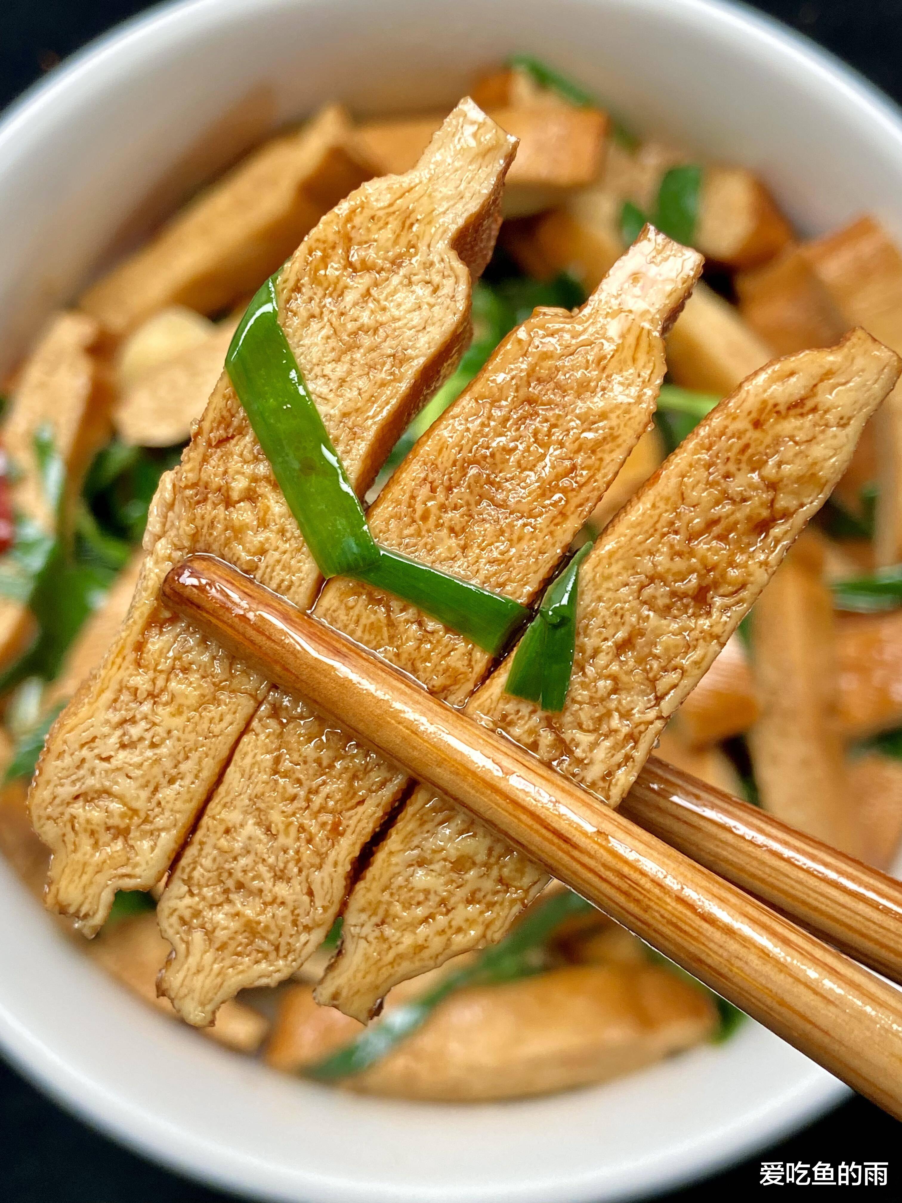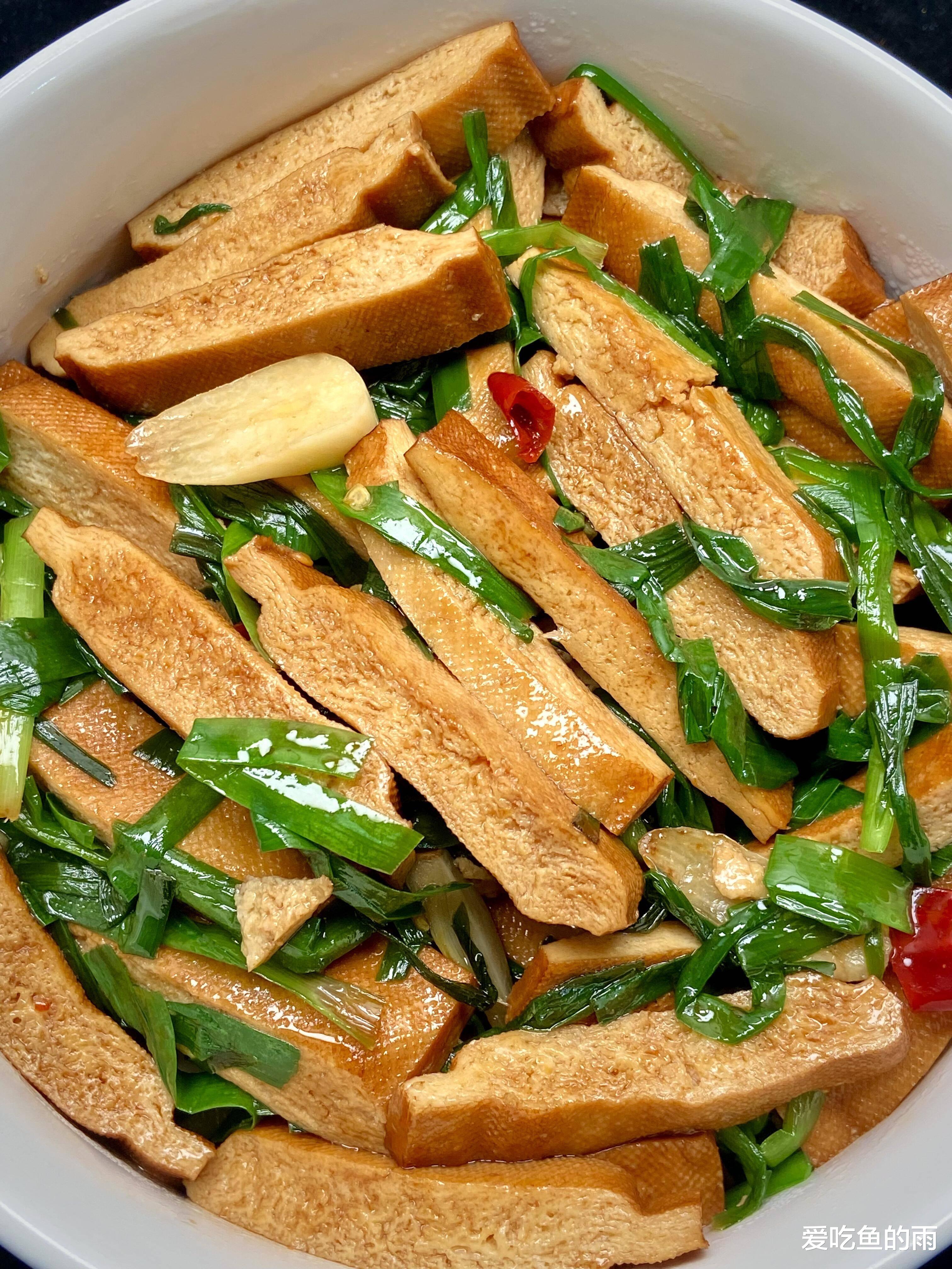 我第一次独立做这道菜时,总怕韭菜不熟,结果炒过头了,叶子软塌塌的,全没了脆嫩劲儿。后来才懂,这道菜的妙处就在于“脆嫩配醇香”——香干煎得微焦带韧,韭菜炒得脆生生,咬一口,豆干的香、韭菜的甜、油盐的鲜在嘴里层层叠叠,连吃三碗饭都不够。这盘香干炒韭菜,吃的不仅是味道,更是中国人对“家常”二字的深刻理解。香干是豆制品里的“平民明星”,从南到北的菜市场都能见到;韭菜更不用说,“正月葱,二月韭”,春天头茬韭菜最是鲜嫩,中国人吃了几千年。它们搭在一起,不需要名贵调料,不需要复杂刀工,却能在最平凡的日子里,炖煮出最温暖的烟火气。