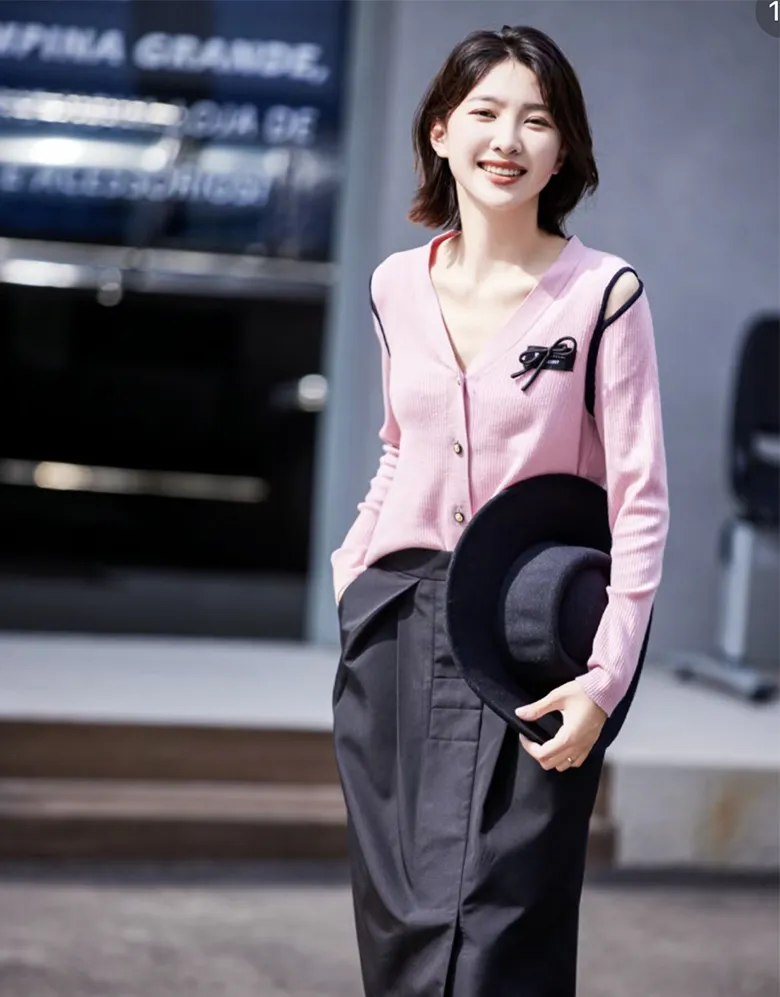 中年女人早就过了拥有粉嫩脸蛋的少女期,穿粉色若还是乖乖女的模样,带着低眉顺眼的乖巧感,就只会把粉色给穿砸了,穿衣风格也会被粉色带偏,反而变成了一种“扮嫩”手段。