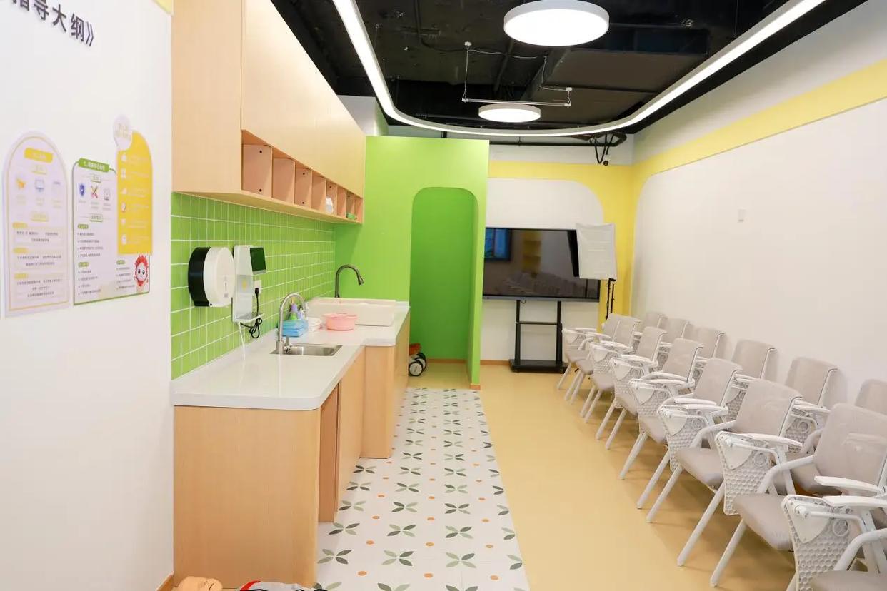 中心突破传统托育局限,推出“满月即托”0-3岁全周期照护服务,填补低龄婴幼儿专业托育空白;创新“空间共建、错时运营”模式,工作日聚焦普惠托育服务,周末转型为托育人员实训基地与家庭育儿课堂,实现空间资源高效利用。同时构建“1+N+n”三级普惠托育网络:以区级中心为核心枢纽,整合托育服务、人才实训、家庭指导、行业监管四大功能;以镇(街)标准化普惠托育园为支撑,通过“公建民营”模式提供价格亲民、质量可控的普惠托位;以社区嵌入式托育点为触角,延伸全日托、半日托、临时托等灵活服务,精准破解家庭临时照护“急难愁盼”。园区遵循“一米视角”儿童友好原则,深度践行“医育结合”理念,链接专业妇幼保健资源,为婴幼儿提供全流程健康保障。