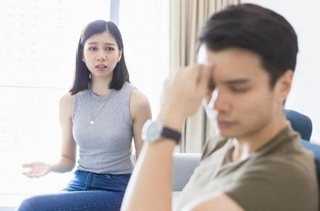 妻子一副爱搭不理的模样。
