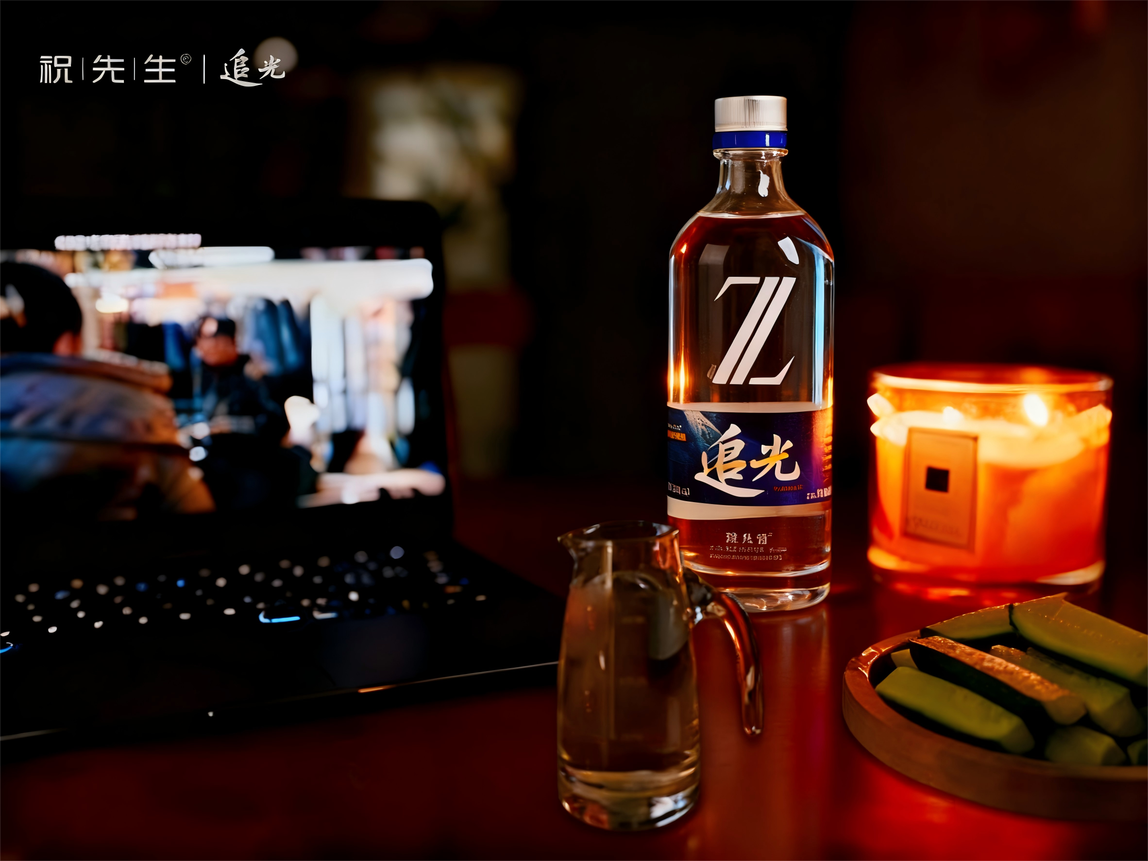 祝先生·追光的包装上没有烫金大字,没有"国宴特供"标签,只有素白瓶身和一行小字:"敬每一个,为喝酒而喝酒的人。"