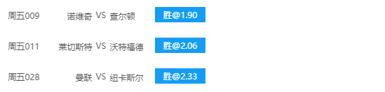 今天的五大联赛分享到这里就结束了,本期的三场比赛全部是走的正路方向,没什么特别高质量的地方属于稳妥路线,因为感觉这三场比赛都可能出主胜所以不做过多犹豫,相信明天赛后可以证实这句话,我们下期见!